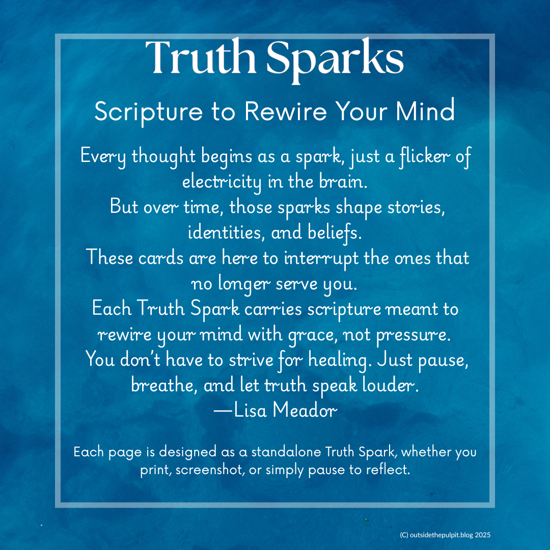 Truth Sparks Set 2 is a collection of printable reflection cards designed to help you gently release the victim mindset and reclaim your God-given agency. Each card pairs a limiting thought with a renewing truth from Scripture—offering clarity, comfort, and transformation in a format that’s simple to use and easy to share.